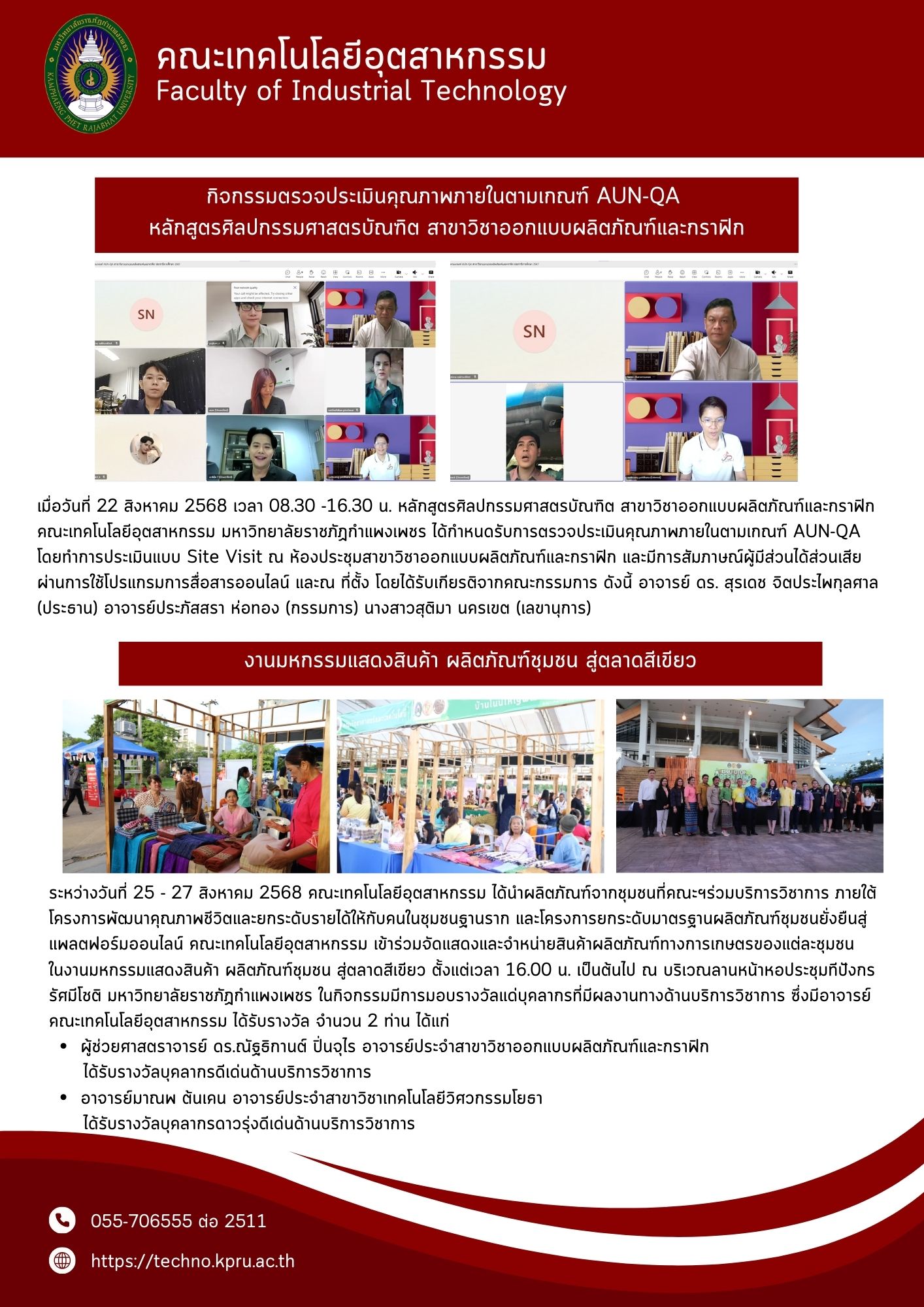 คณะเทคโนโลยีอุตสาหกรรม. (2568). จดหมายข่าวคณะเทคโนโลยีอุตสาหกรรม ฉบับประจำเดือน สิงหาคม 2568. สืบค้น 26 พฤศจิกายน 2568, จาก https://techno.kpru.ac.th/main/?lang=TH&page_id=275