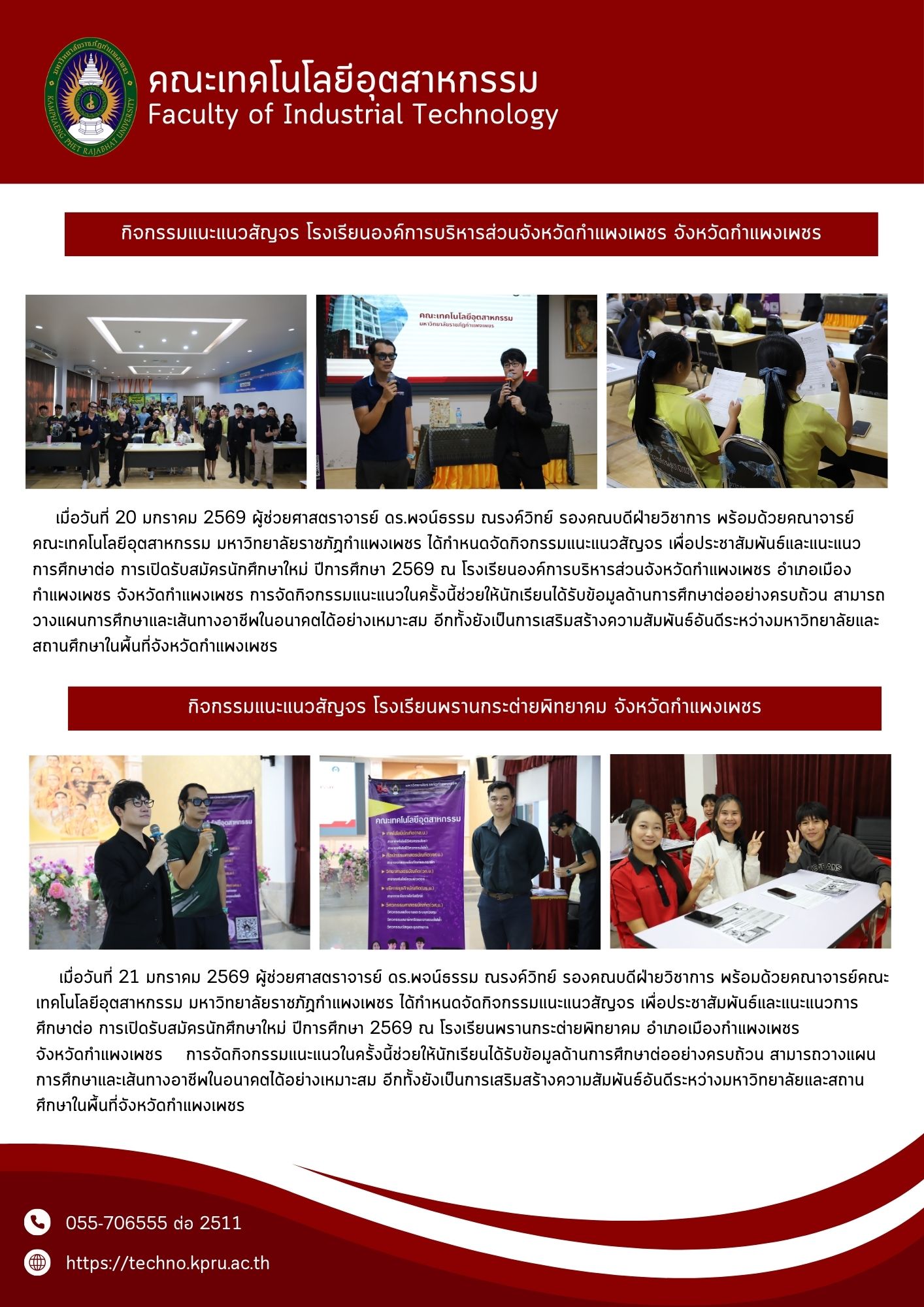 คณะเทคโนโลยีอุตสาหกรรม. (2569). จดหมายข่าวคณะเทคโนโลยีอุตสาหกรรม ฉบับประจำเดือน มกราคม 2569. สืบค้น 15 กุมภาพันธ์ 2569, จาก https://techno.kpru.ac.th/main/?lang=TH&page_id=310