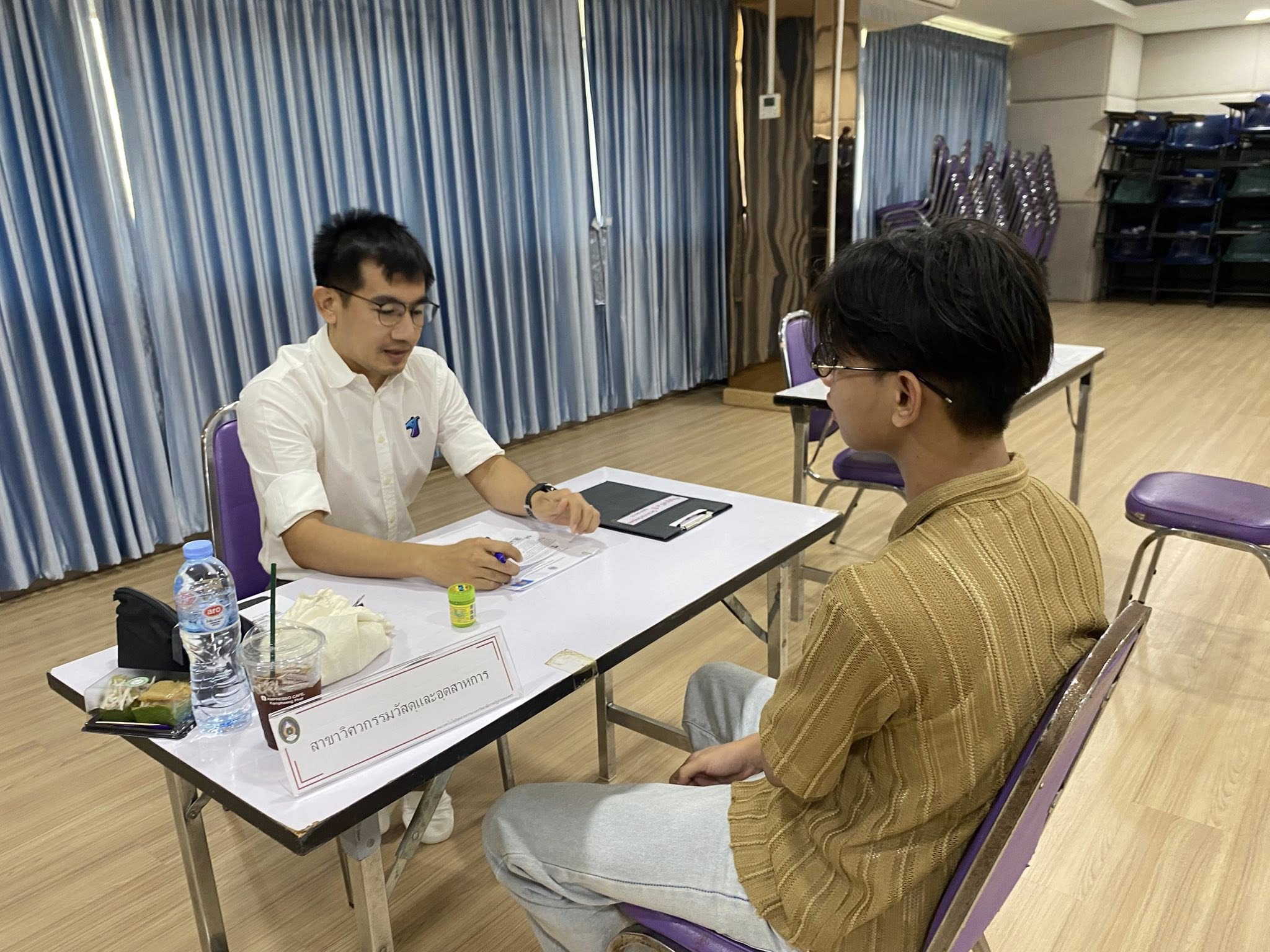 คณะเทคโนโลยีอุตสาหกรรม. (2569). บรรยากาศการสอบสัมภาษณ์การรับสมัครนักศึกษาใหม่ ปีการศึกษา 2569 รอบที่ 3. สืบค้น 8 เมษายน 2569, จาก https://techno.kpru.ac.th/main/?lang=TH&page_id=315